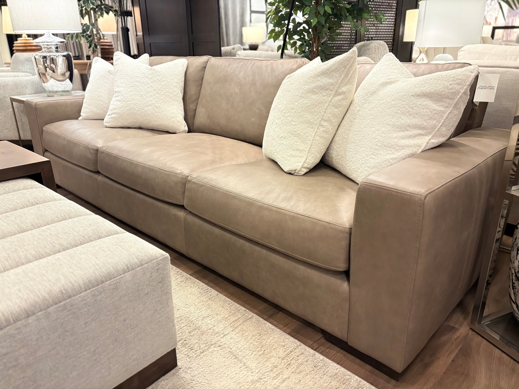 Bring an effortless sophistication to your living space with the beautiful Cohiba Collection. Locally built with solid maple frames, high density foam and upholstered in premium top grain leather. Featuring an 42” depth with option to upgrade to premium feather seats and backs. Available as a sofa, oversized sofa, condo sofa, loveseat, chair, chair and a half or sectional. Hundreds of top grain leathers or fabrics to choose from.
