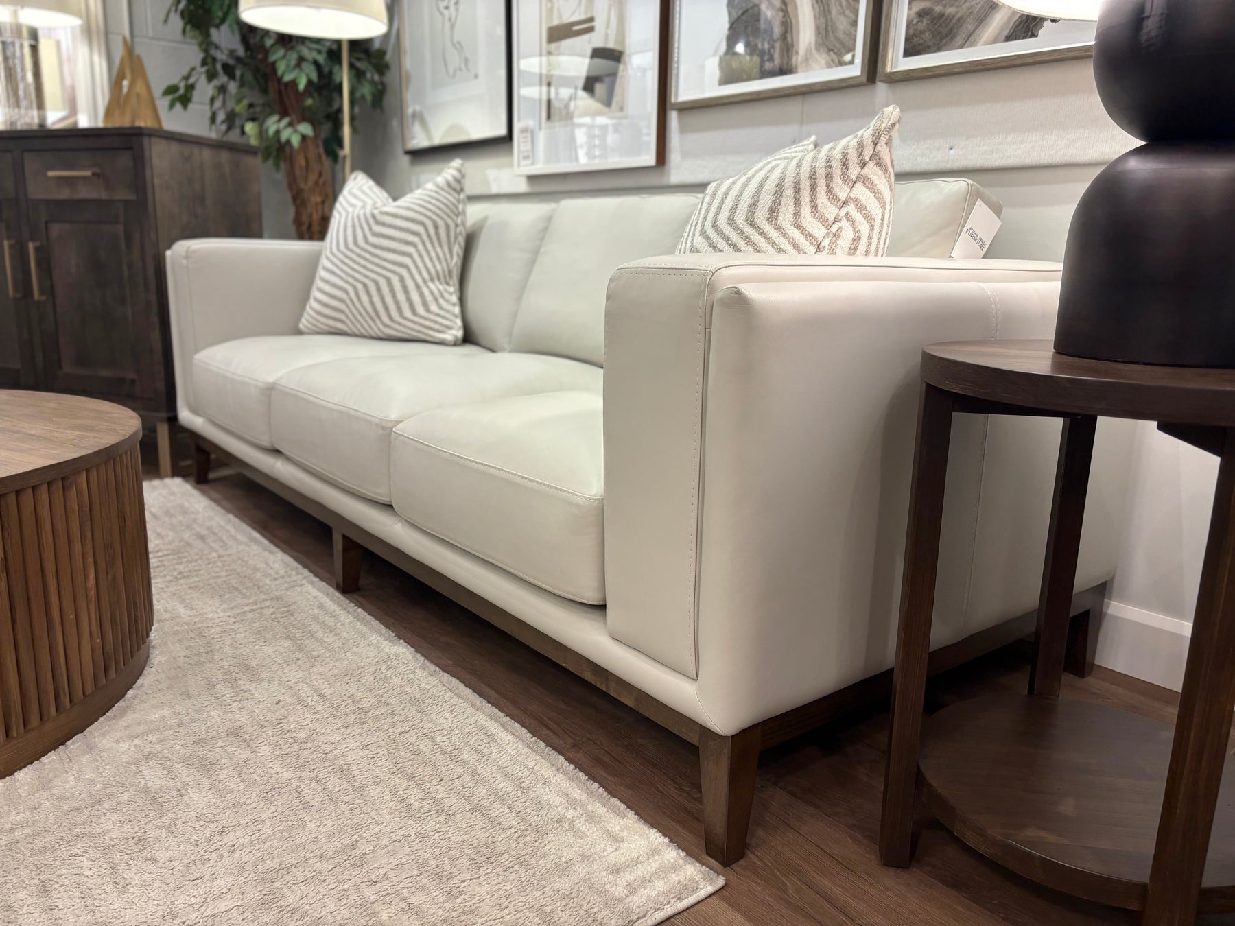 Artfully designed with to soft geometric lines, the Concerto Collection evokes a distinctly modern design. Locally made with solid maple frames, high density foam and upholstered in premium top grain leather or fabric. Option to upgrade to feather backs and seats. Available as a sofa, condo sofa, loveseat, chair, chair and a half or sectional. Hundreds of top grain leathers or fabric to choose from.