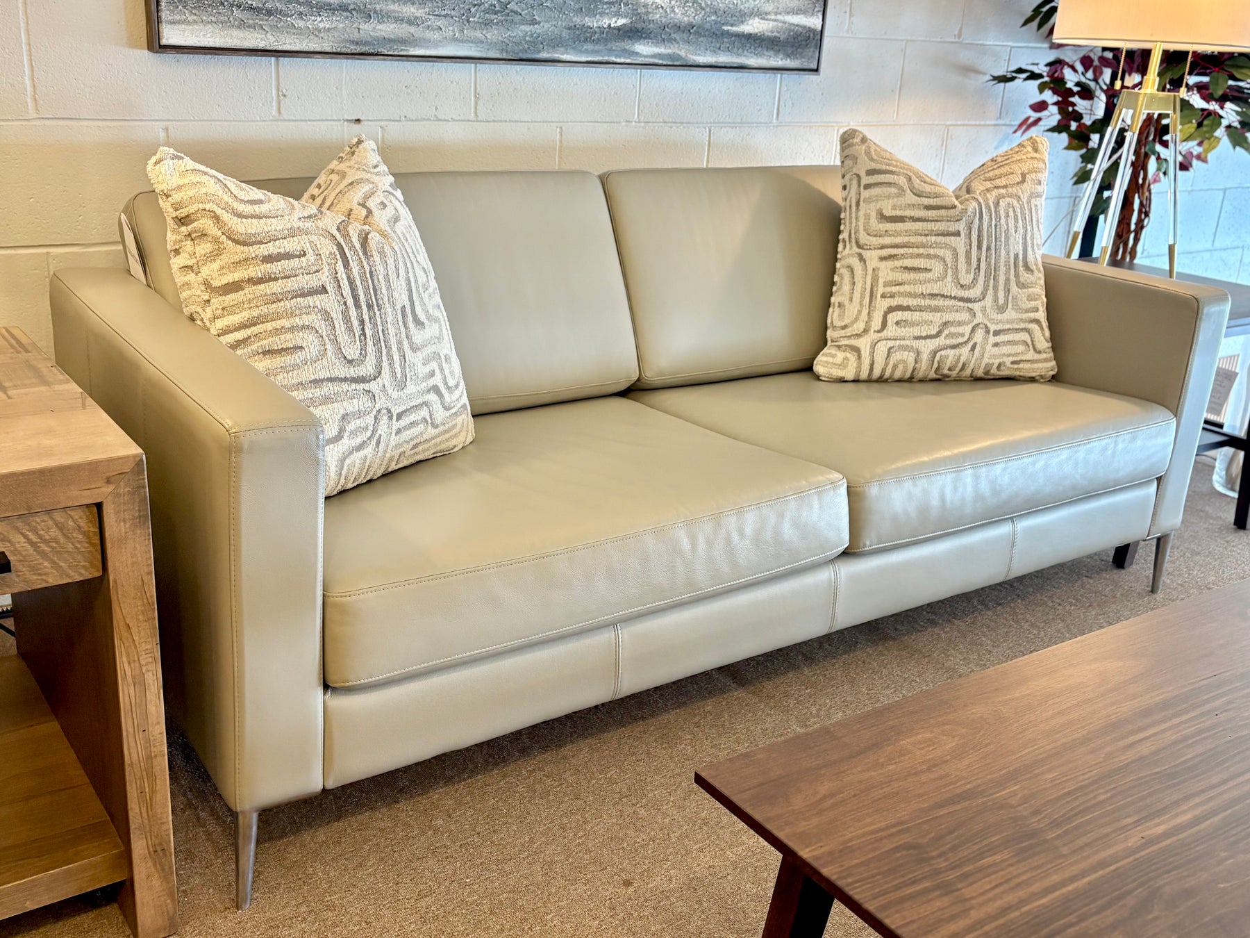 The Kensington Collection boasts transitional style with a simple silhouette that will complement any living space. Locally built with solid wood frames, high density foam and upholstered in premium top grain leather. Available with a sleek metal leg or classic wooden tapered leg. Available with loose backs or a tight channeled back. Available as a sofa, loveseat, chair or sofa chaise. Hundreds of top grain leathers or fabrics to choose from.