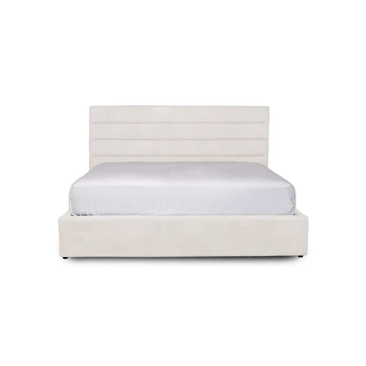 Designed with simple horizontal channels, The Coast Bed brings harmony to your bedroom sanctuary. Upholstered in a neutral cream poly linen with a 50” high headboard.